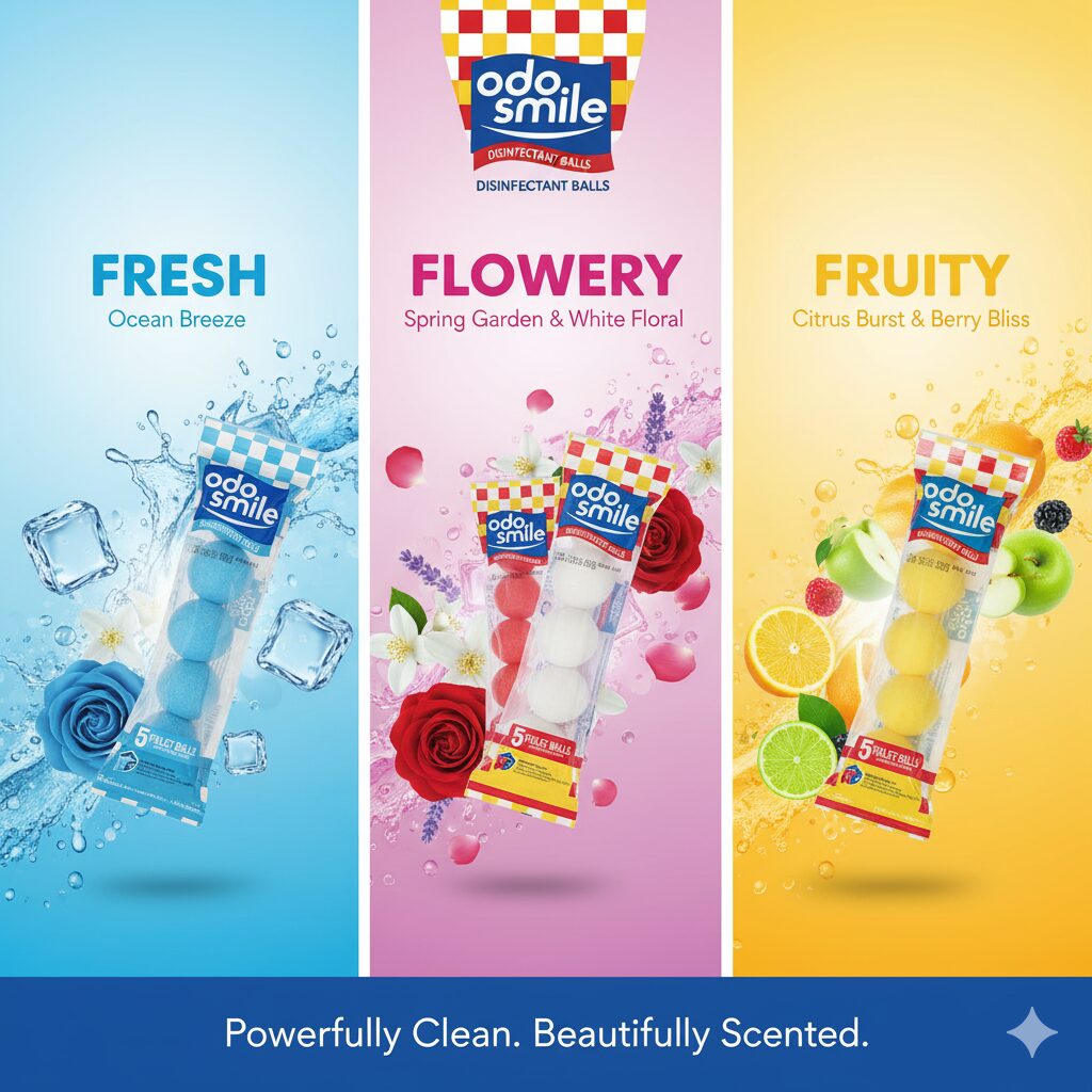 Odosmile disinfectant Scented Toilet Balls disinfect urinals and reduce bad odors. They are scented to give the urinal a pleasant smell. It dissolves in water to prevent blockages.